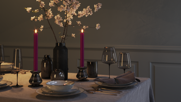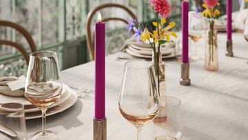 Vela fina ficam evidentes na mesa de jantar em castiçais finos, onde conferem um visual leve e elegante - tanto para o uso diário quanto na arrumação para convidados.