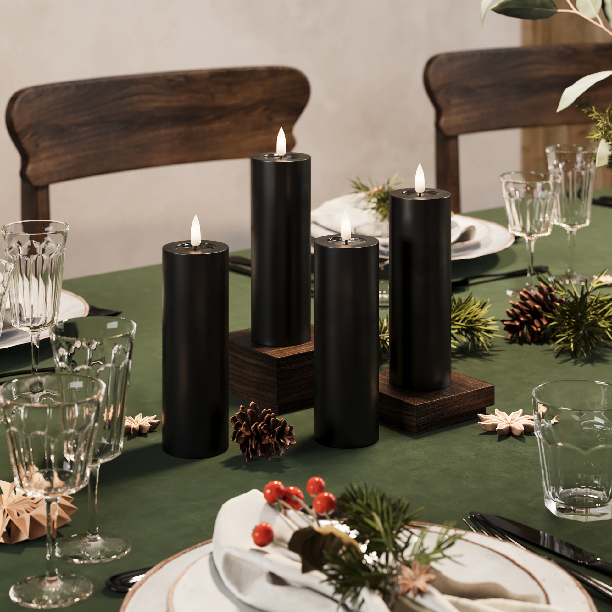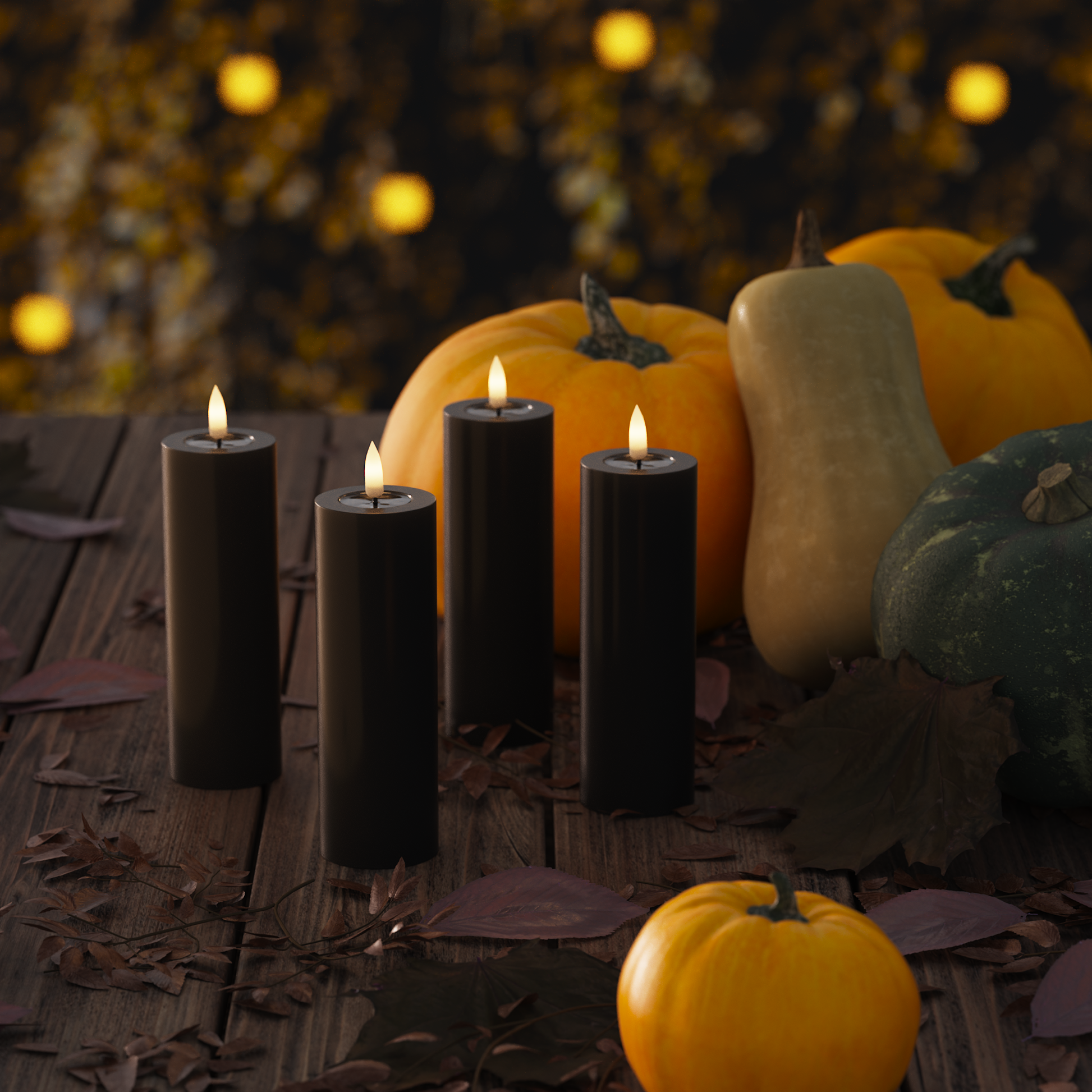 Bloklys er perfekte til dekorationer. Saml dem på et fad, i en lanterne eller i vindueskarmen for en rolig stemning.